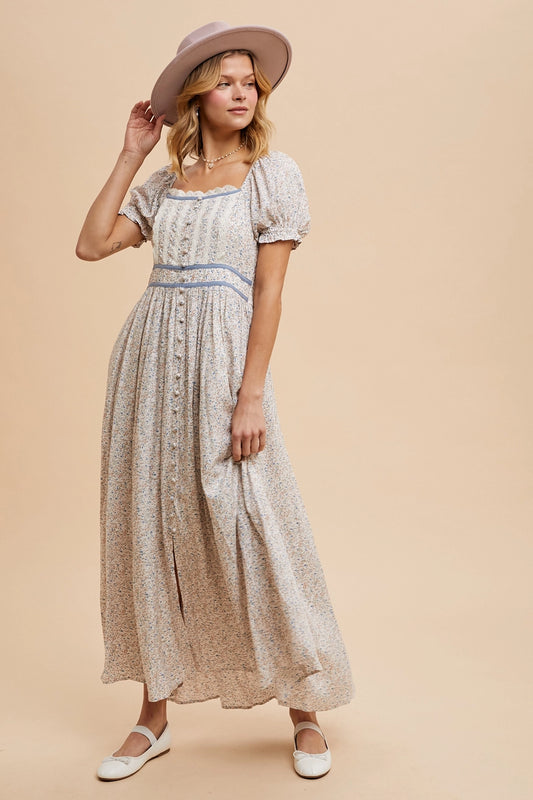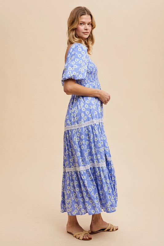 AusverkauftBlümchen Midi/Maxikleid "Delilah" Blau