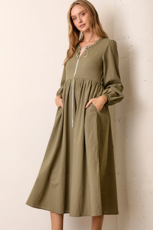 Kariertes Langarm Kleid "Lina" Olivegrün