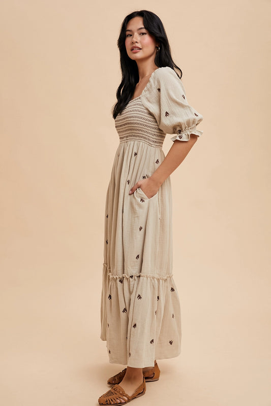 AusverkauftGesmocktes Maxikleid "Brianna"