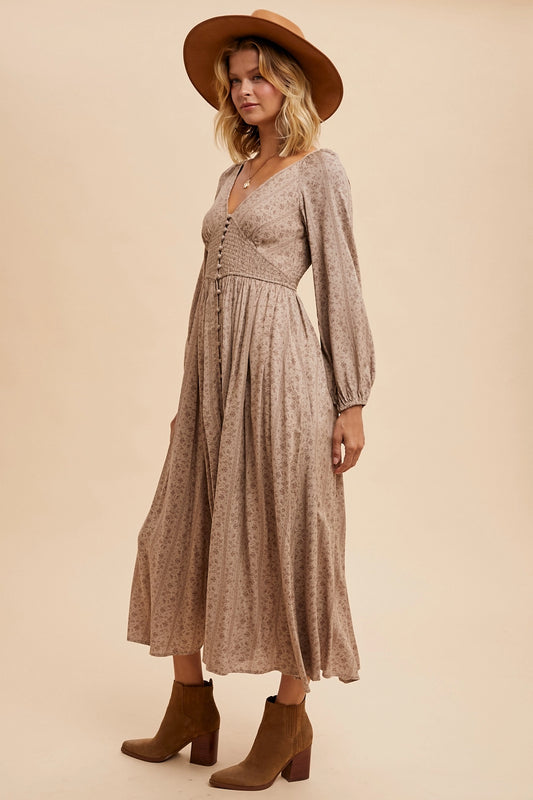 AusverkauftBlümchen Maxikleid "Juniper" (Taupe)