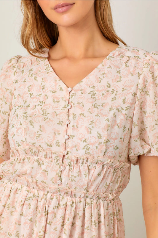 AusverkauftBlümchen Midikleid "Emery" Creme