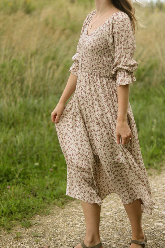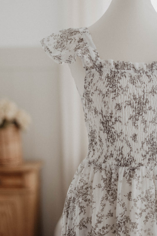 AusverkauftBlümchen Midikleid "Emery" Creme