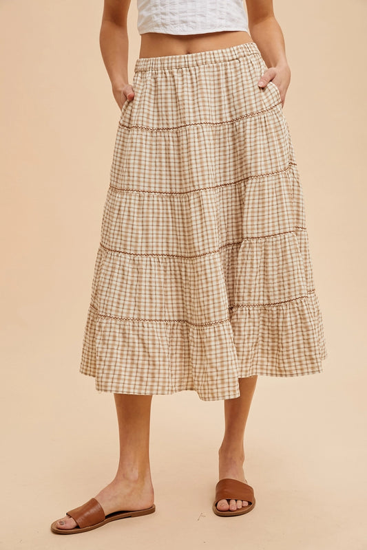 Karierter Midirock "Nelli" (hellgrau)