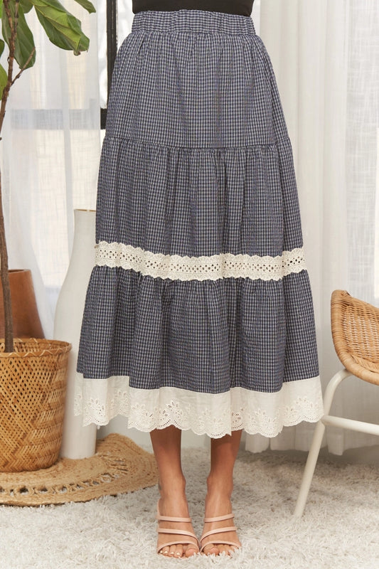 Karierter Midirock "Nelli" (dunkelblau)